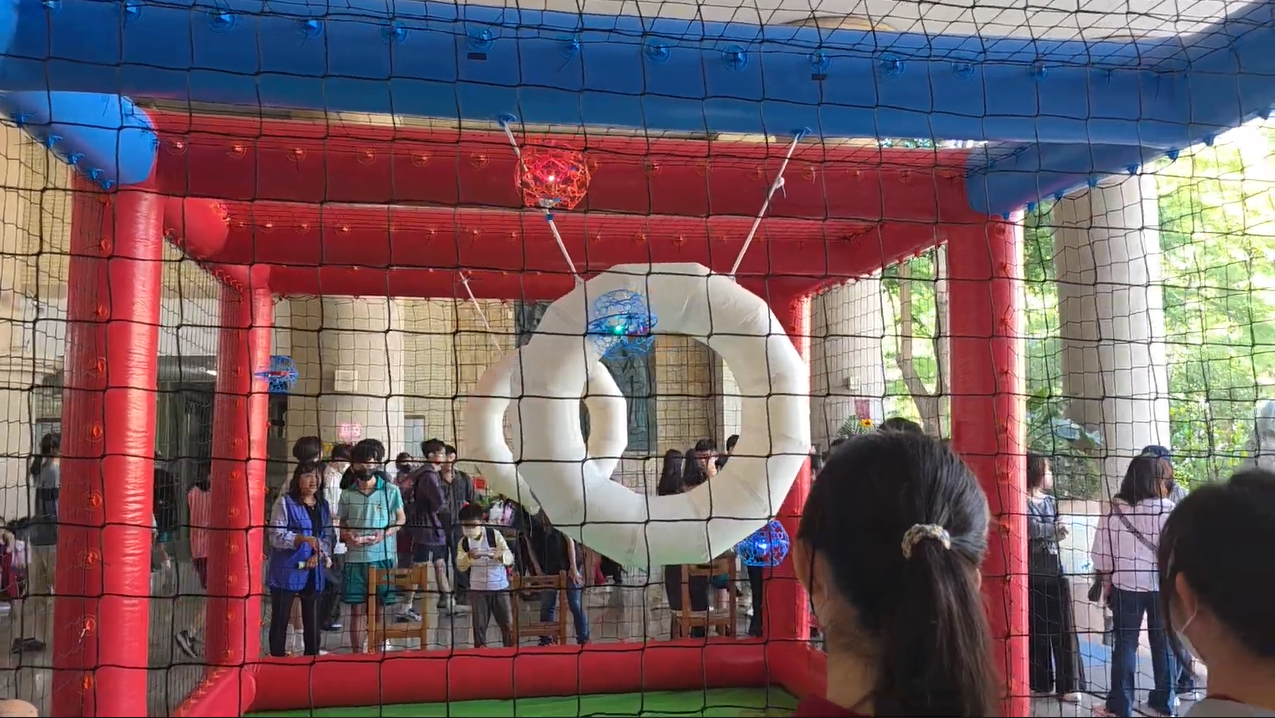 看著同學跟家長們手握遙控器,操縱著閃爍微光的無人機足球在空中穿梭、衝撞,試圖攻破對方防守的圓環球門,那種緊張感完全不輸世界盃!